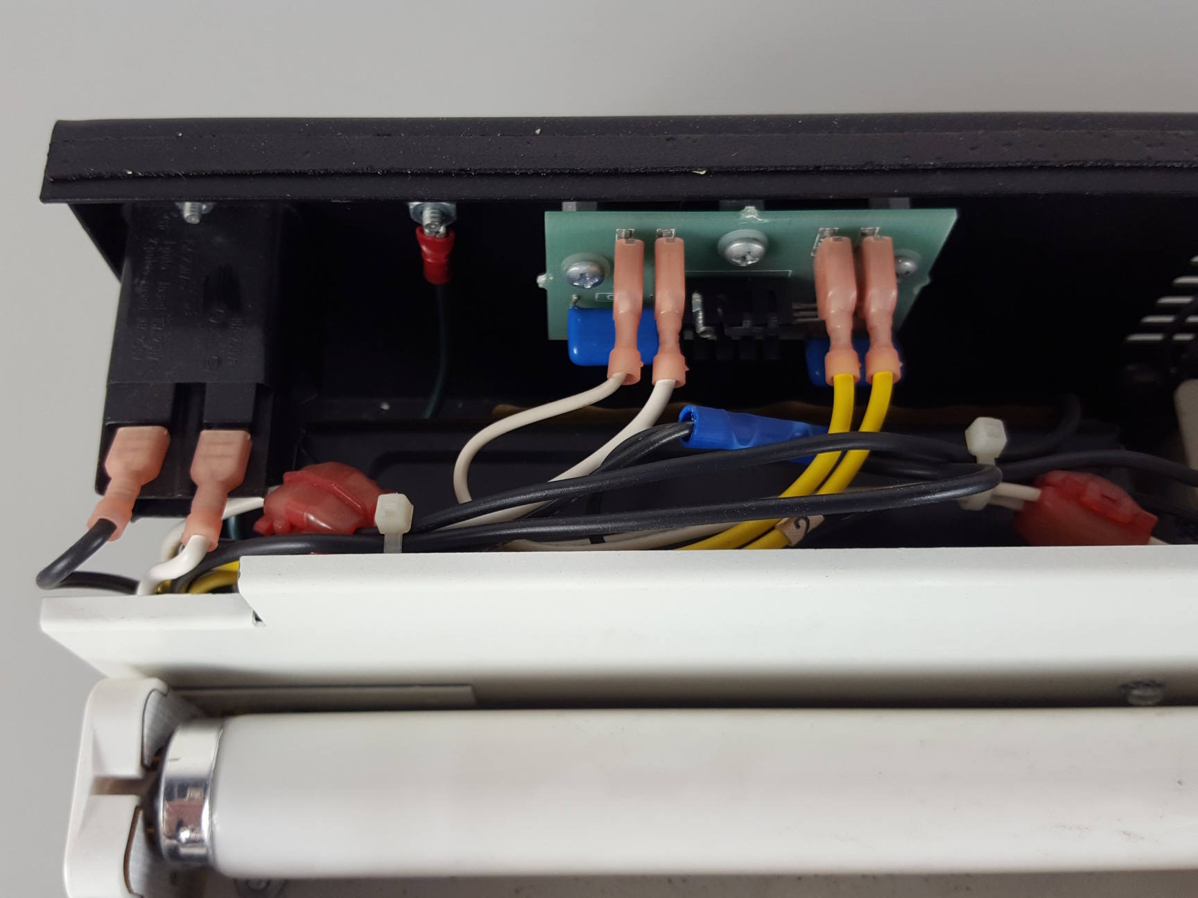 The unit powers on and all the sockets and bulbs are working. The dimming function was tested and is also working.