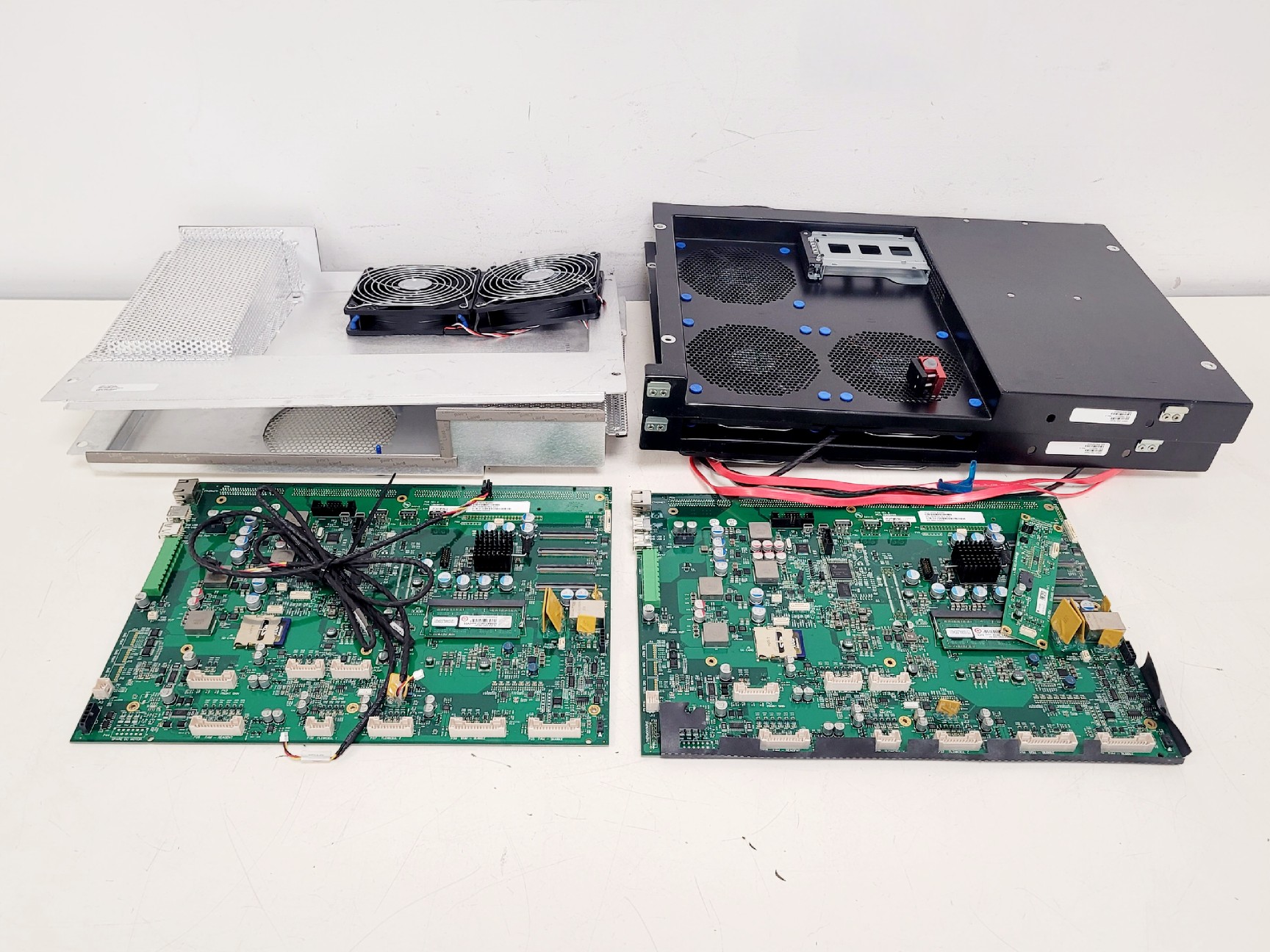Consists of two motherboards and two fan assembly units.